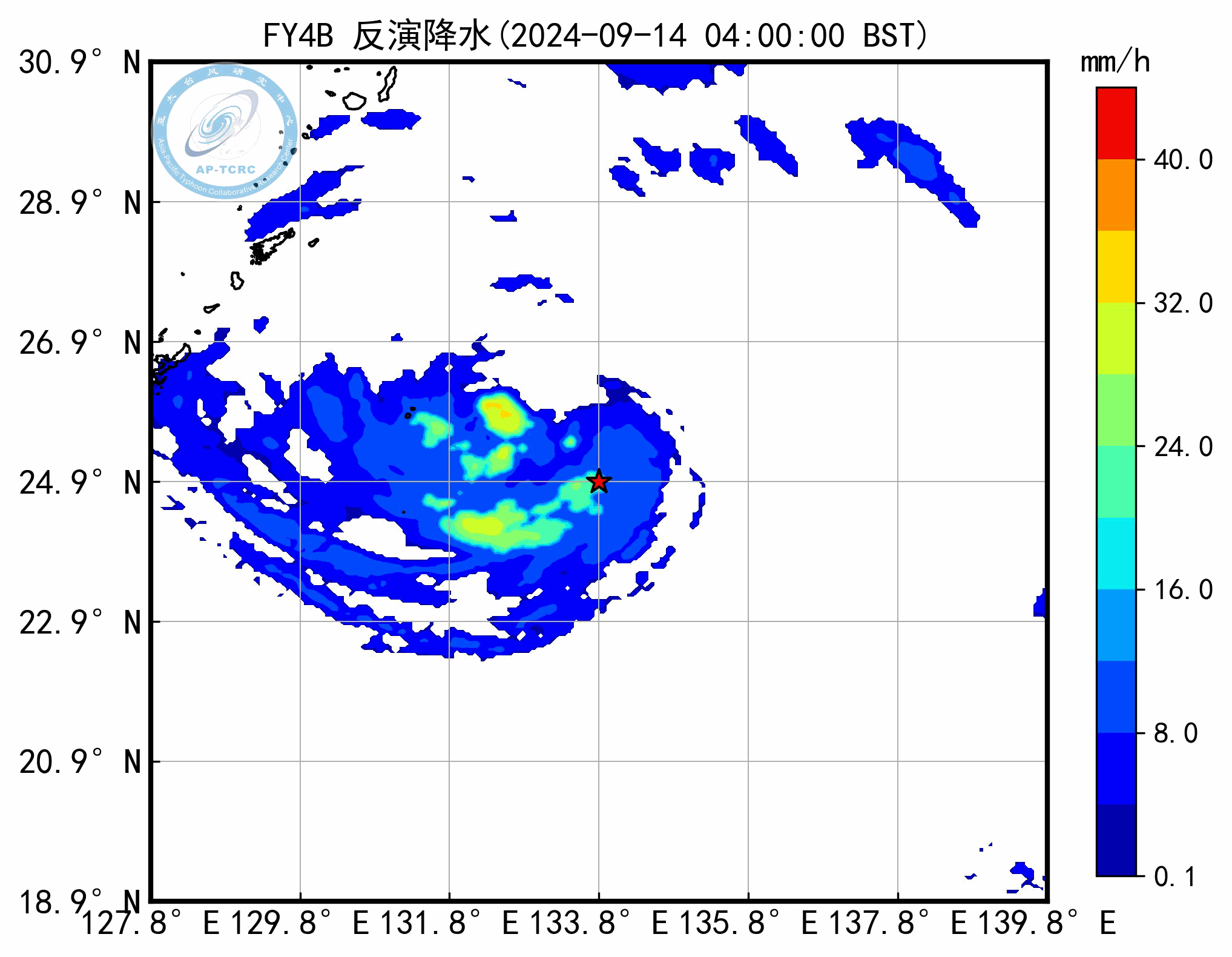 台风“贝碧嘉”风云4B静止卫星一小时累积降水反演产品